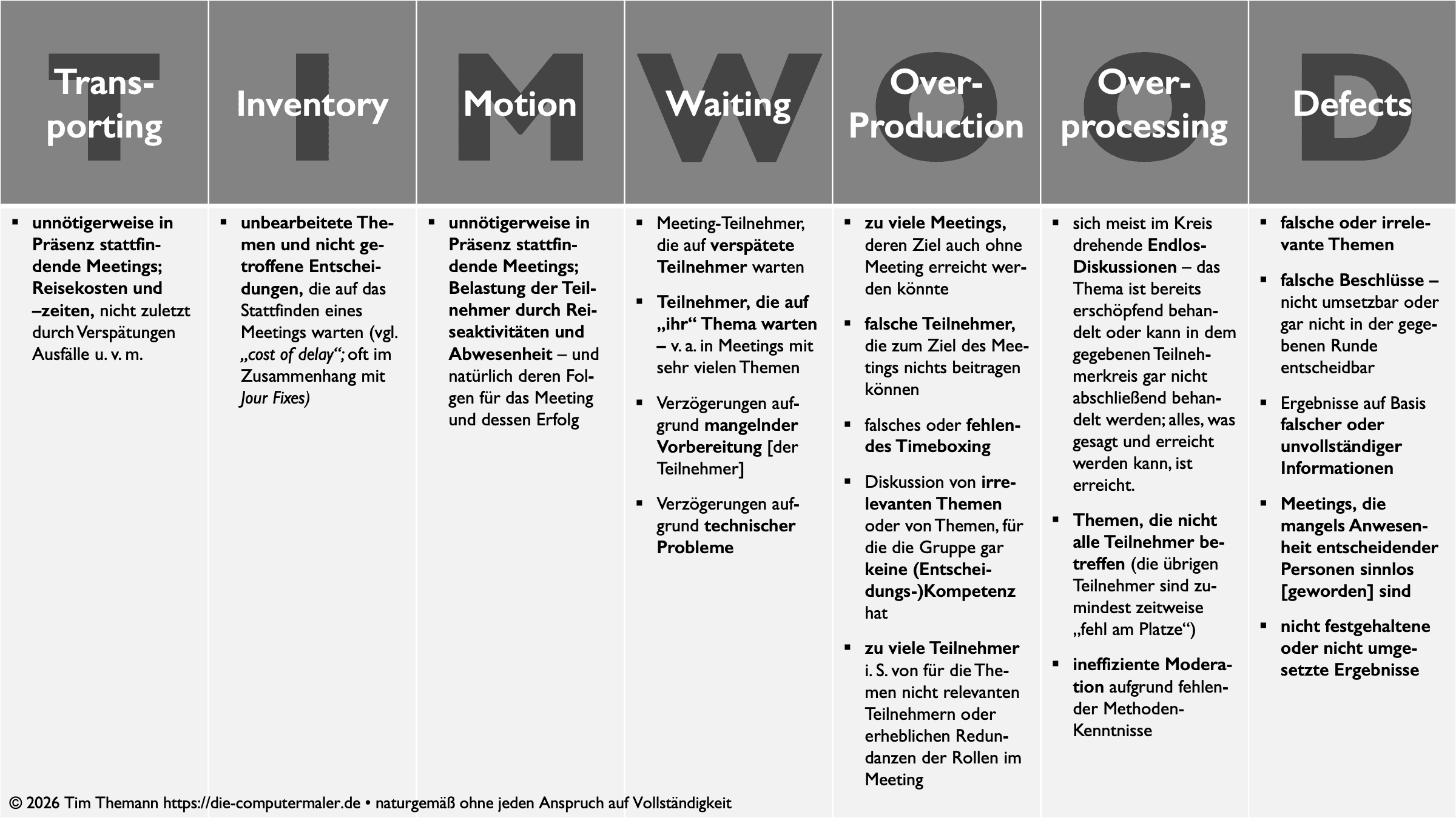 - Die Besprechung sollte frei von Verschwendung („Muda“, 無駄) sein: